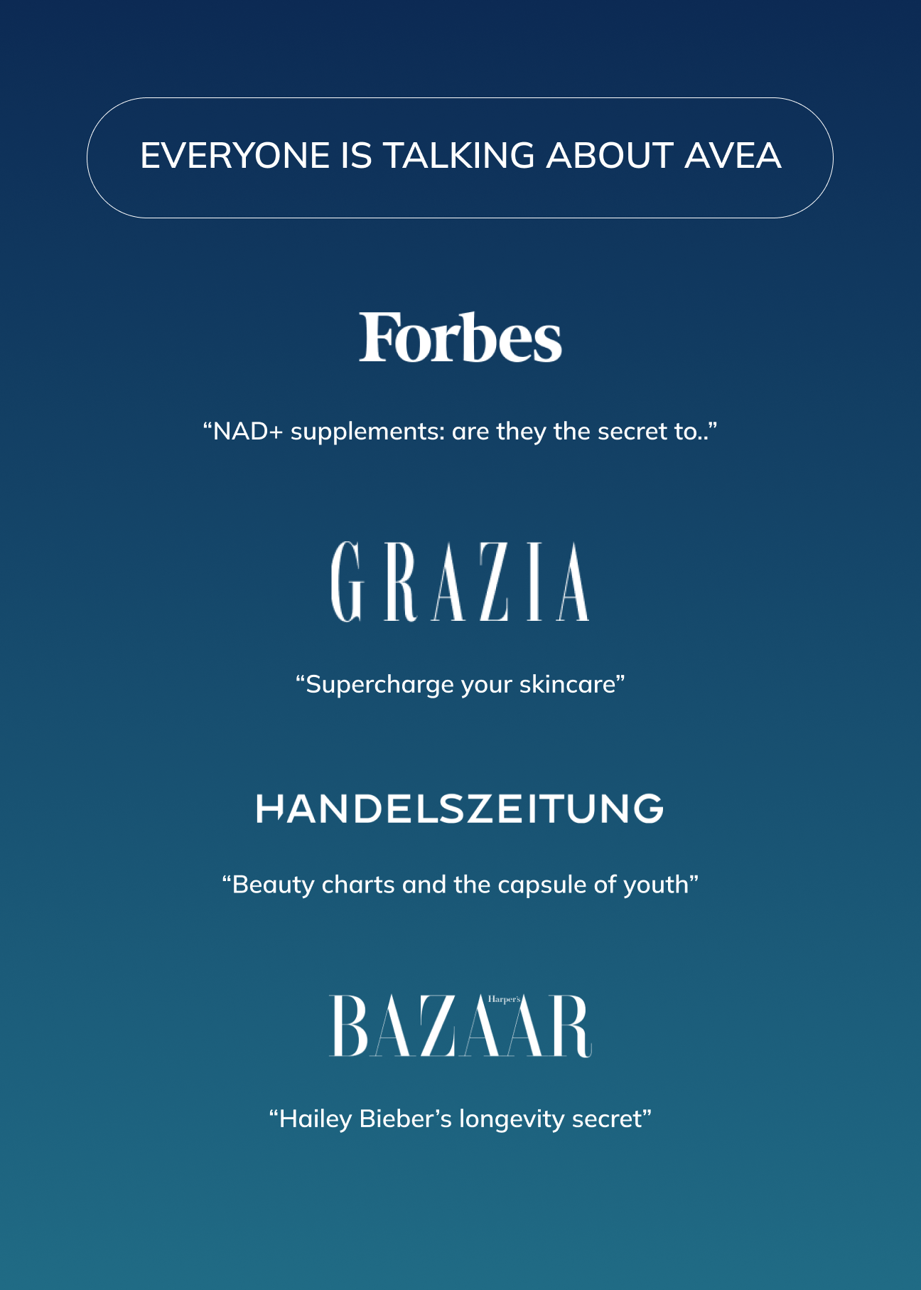Podcaster, Author, Speaker"Everyone knows that a healthy lifestyle accounts for 80% of our well-being, but the remaining 20% is down to molecules. That's exactly why I take AVEA's NAD+ Booster to supplement that 20%."